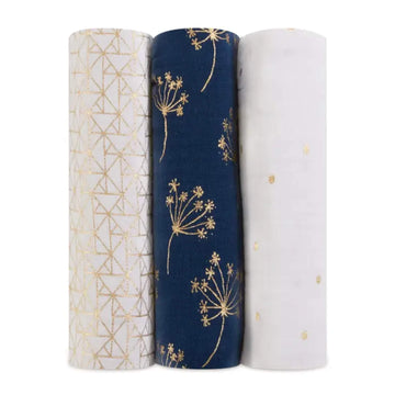 aden + anais Boutique Cotton Swaddle - 3pk (Metallic Gold Deco)