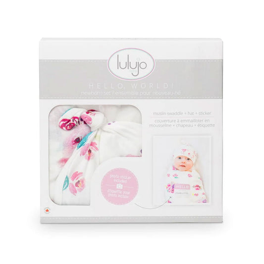 Lulujo Hello World Hat & Swaddle Set (Daisies)