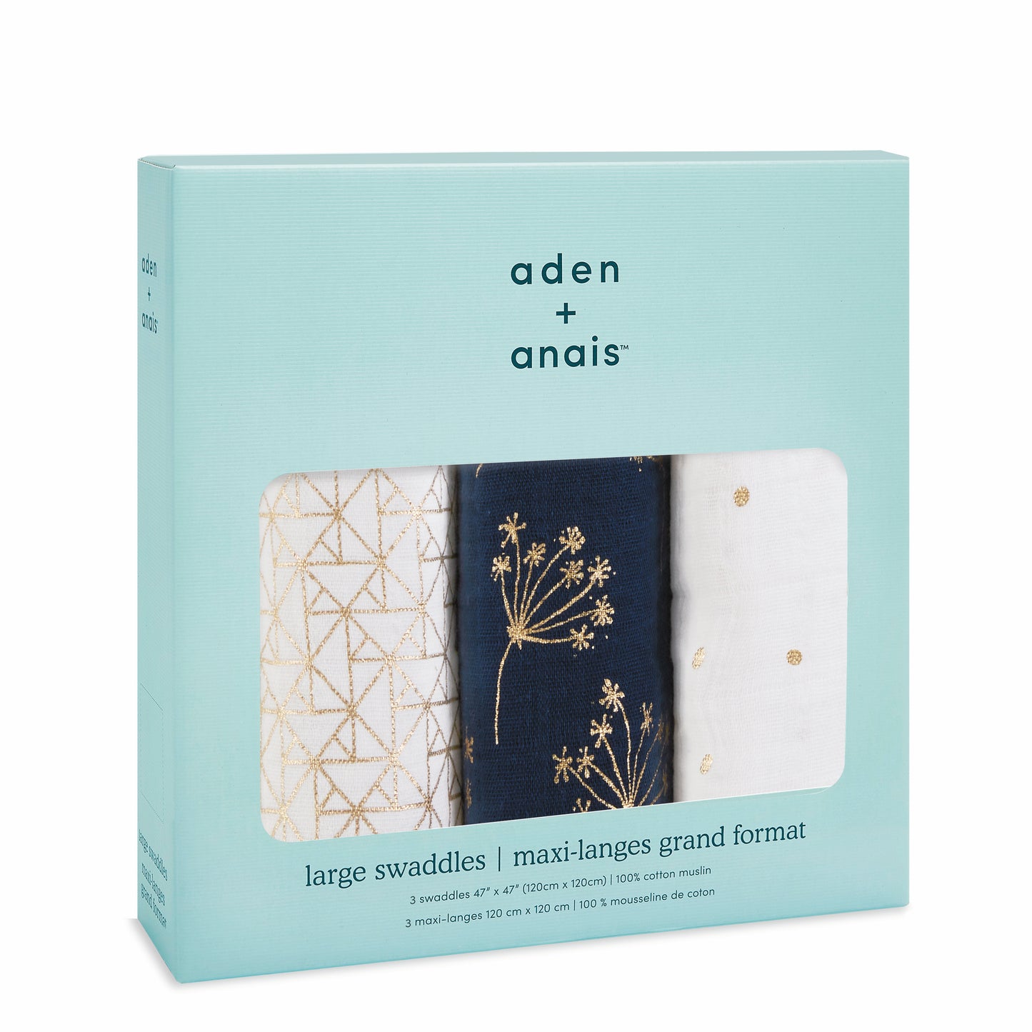 aden + anais Boutique Cotton Swaddle - 3pk (Metallic Gold Deco)