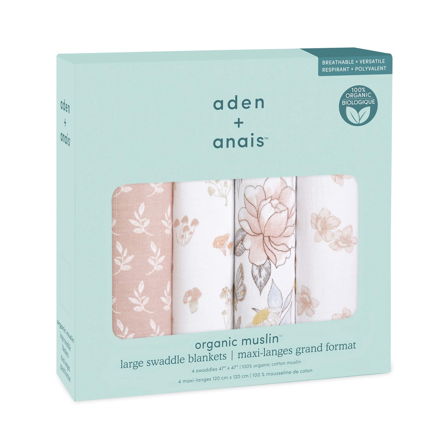 aden + anais GOTS certified swaddle blankets are consciously crafted for comfort, quality and sustainability. Made from 100% organic cotton muslin, they’re breathable, beautifully soft, and get even softer with every wash.