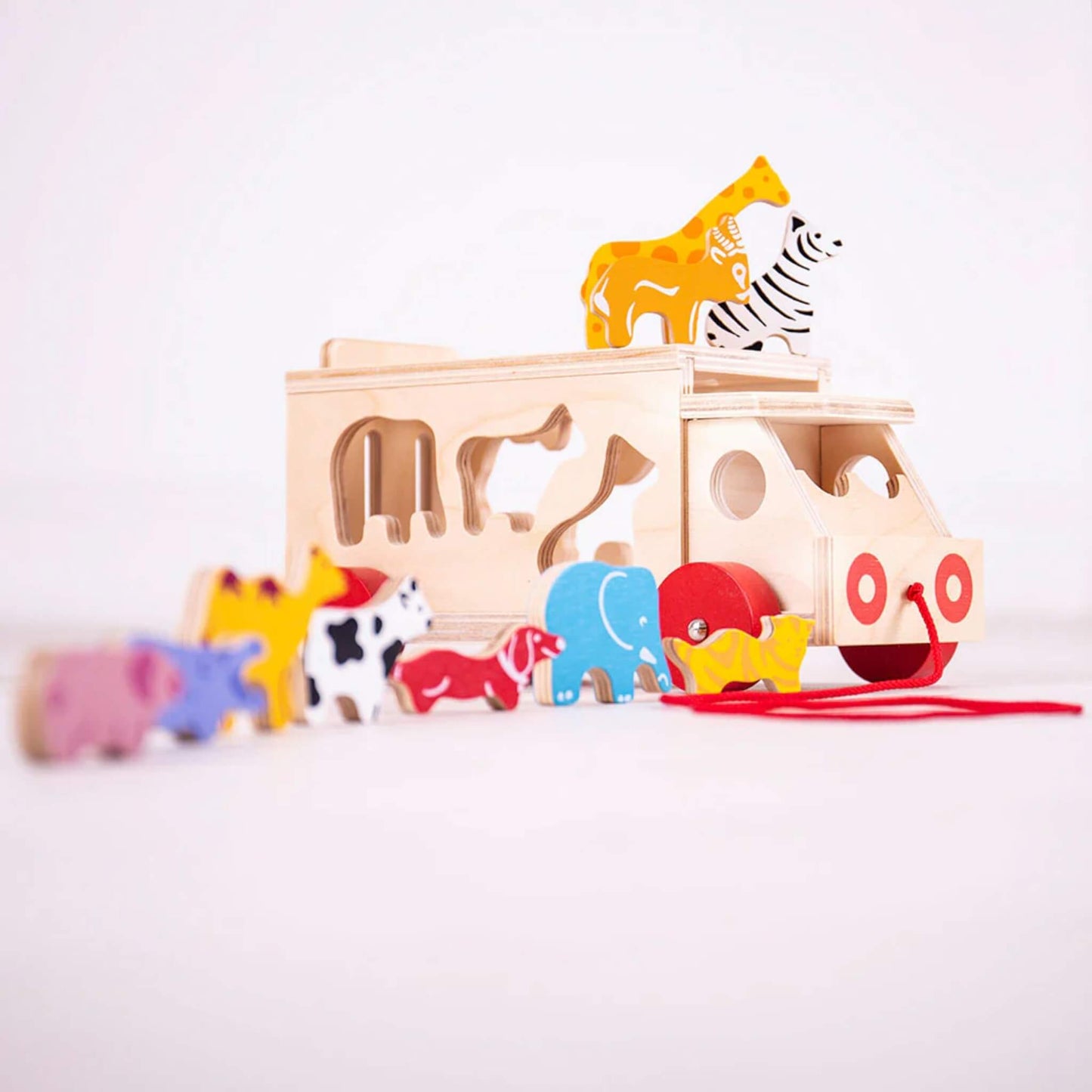 Once all the animals are safely aboard, close the tailgate, grab the sturdy red cord, and set off on a lorry adventure. The sturdy red wooden wheels ensure this fun lorry is able to be safely pulled around every room in the house.