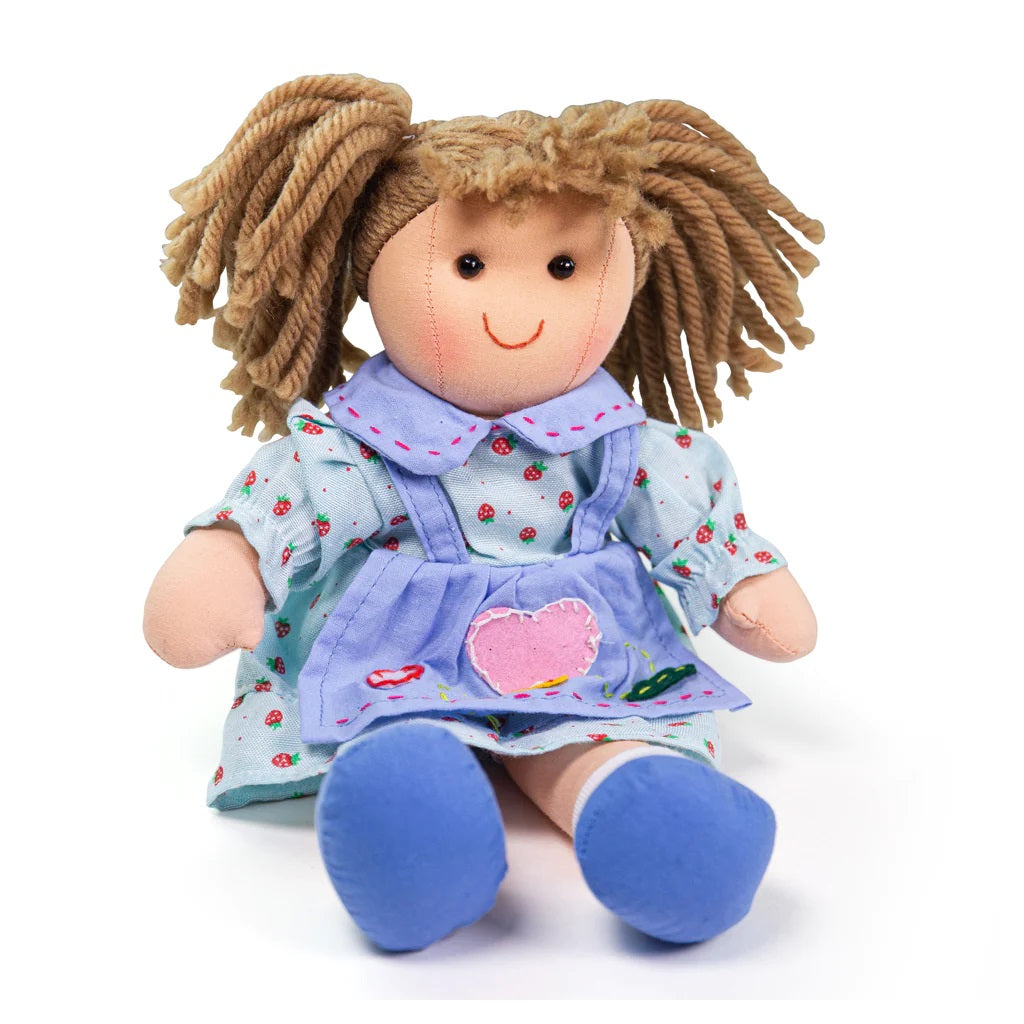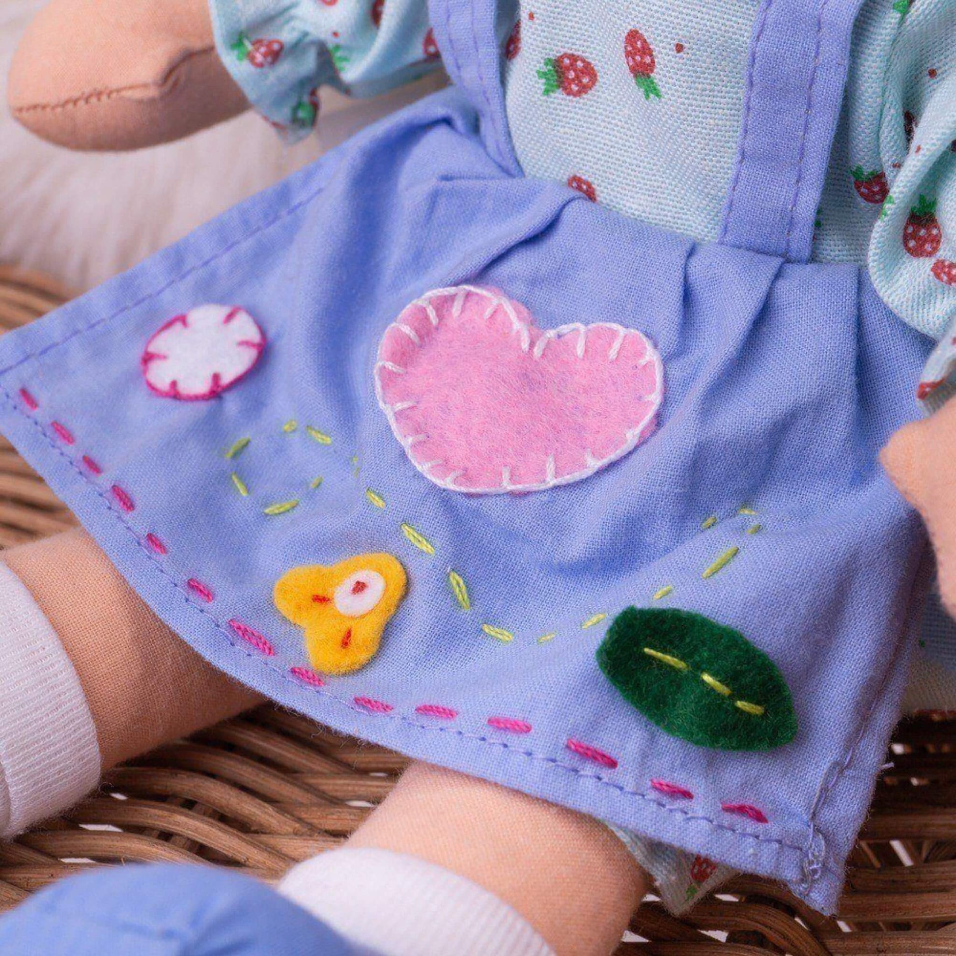 Meet Grace! With her strawberry-patterned blue dress, Grace will quickly become a playtime favourite. Grace has delightful bunches in her hair and loves to be hugged and cuddled.