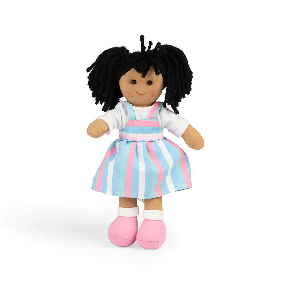 Kira Doll is ready to meet her new little bestie! Kira is a soft and cuddly ragdoll dressed in an adorable outfit. Kira’s hair comes tied up in cute bunches and she wears her very own striped blue, green and pink dress with pink shoes.