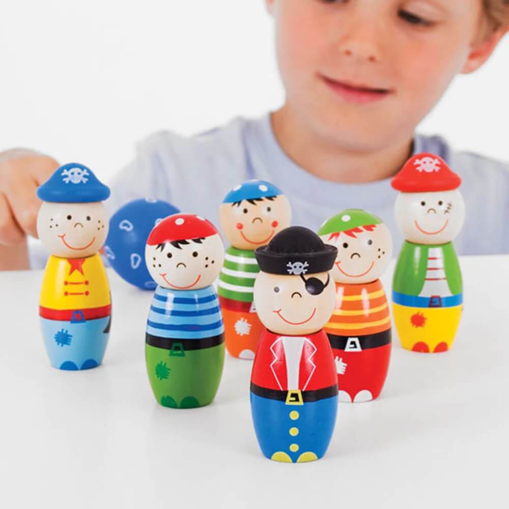 These brightly painted Pirate Skittles from Bigjigs Toys are made to be knocked over, set back up, and toppled all over again. Each wooden skittle has its own cheeky pirate character, adding a bit of fun to every strike.