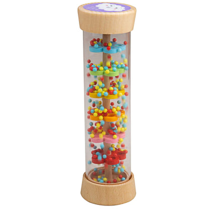 Bring the sound of sunshine and showers indoors with the Bigjigs Toys Rainmaker. As little ones turn the toy, colourful beads tumble down through the tube, mimicking the gentle pitter-patter of rain.