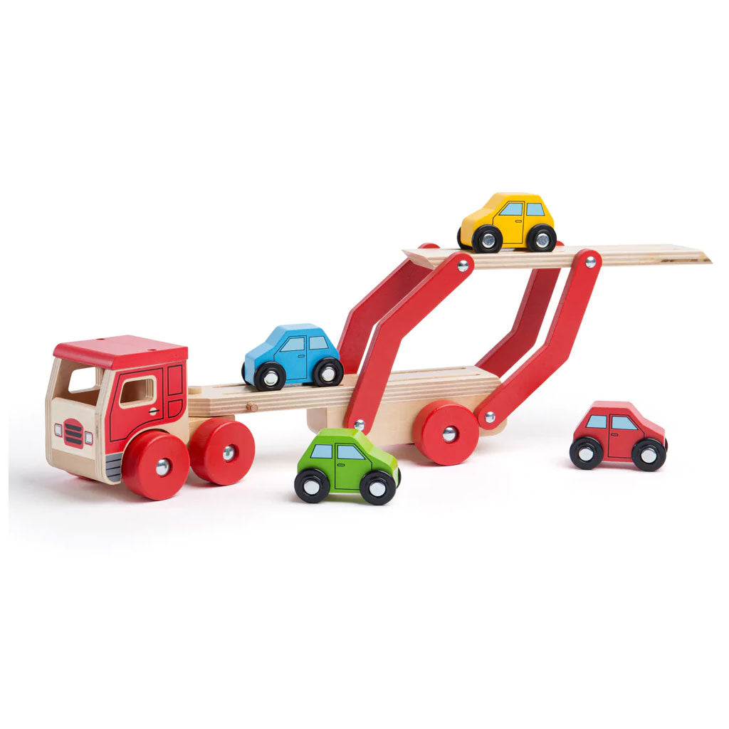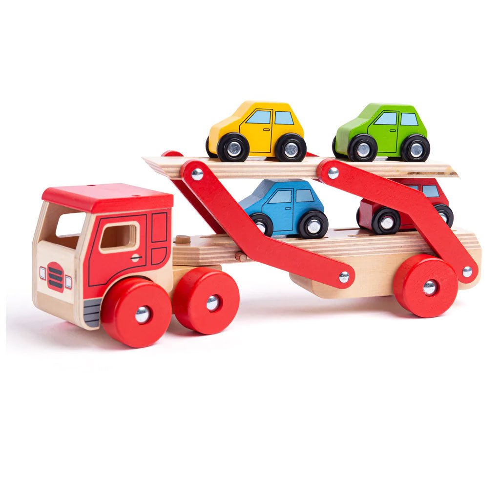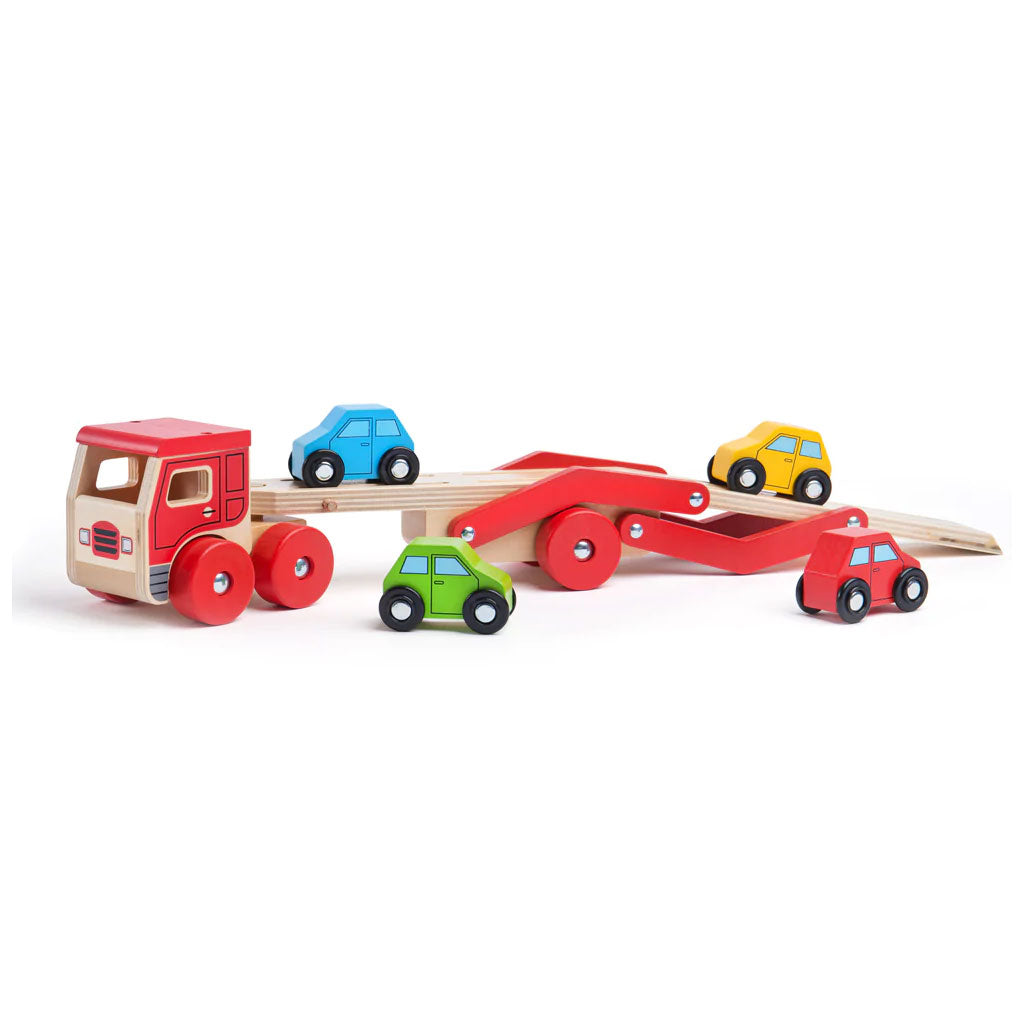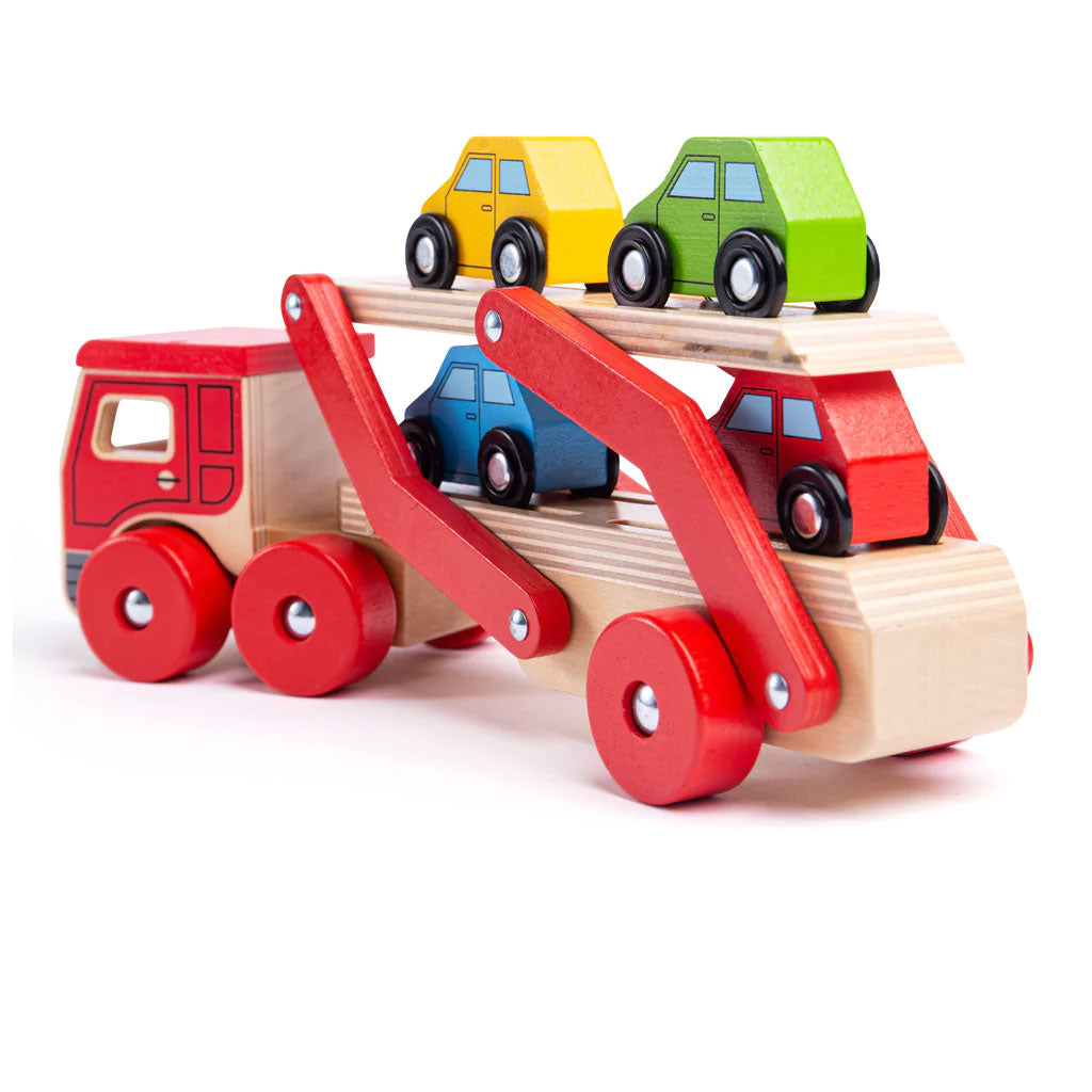 This wooden Bigjigs Toys Transporter Lorry is perfect for little hands with big ideas. It comes with four colourful wooden cars that fit neatly onto the lorry’s trailer—ready to roll...