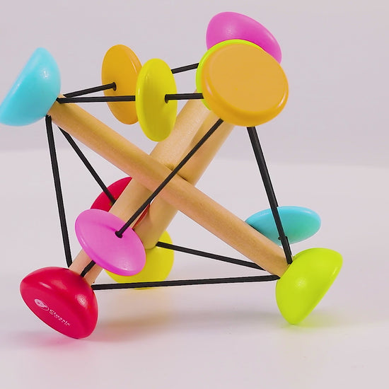 It can be can be stretched and compressed so children learn to move the ball in different ways: Push, pull, squeeze, twist and turn.