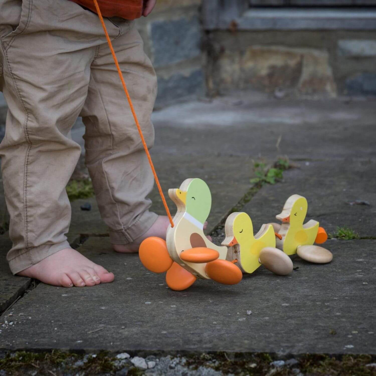 Perfect for toddlers taking their first steps, this pull-along toy makes wanting to walk exciting. The ducks' waggling movement not only entertains but also encourages gross motor skills, helping your little one grow stronger with every step.