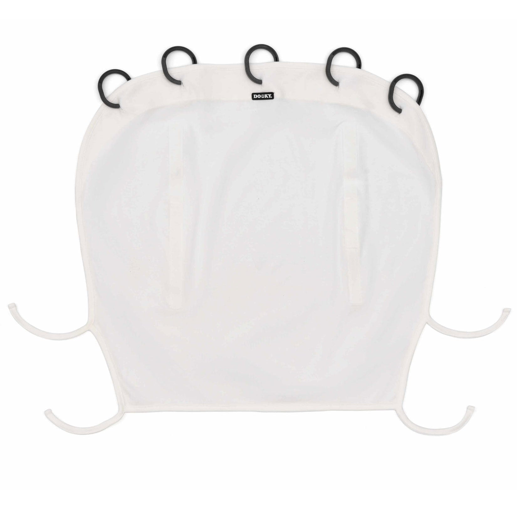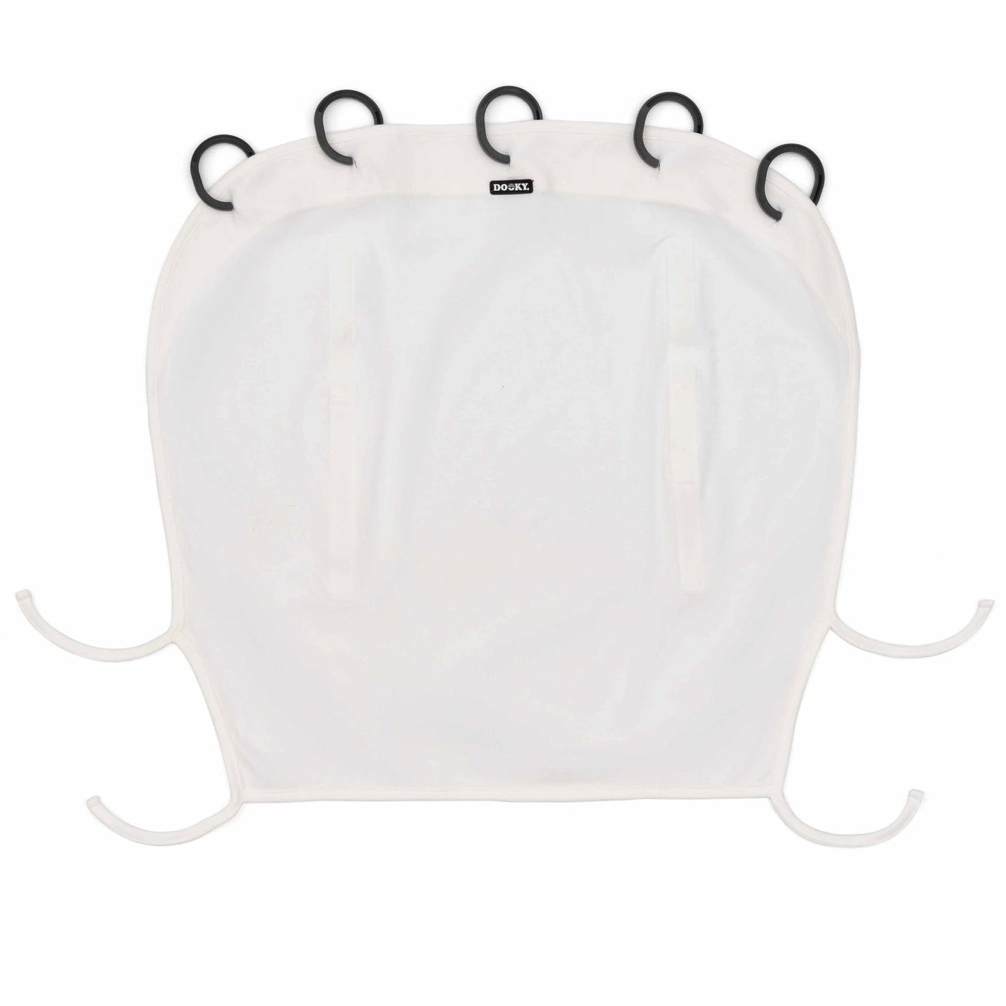 The Dooky Sun Shade helps shield your baby from sun, wind, noise and light rain when you're on the go. It attaches in seconds to your pushchair, stroller, buggy or Group 0+ car seat using five simple rings, with ties at the bottom to stop it flapping about on breezy days.