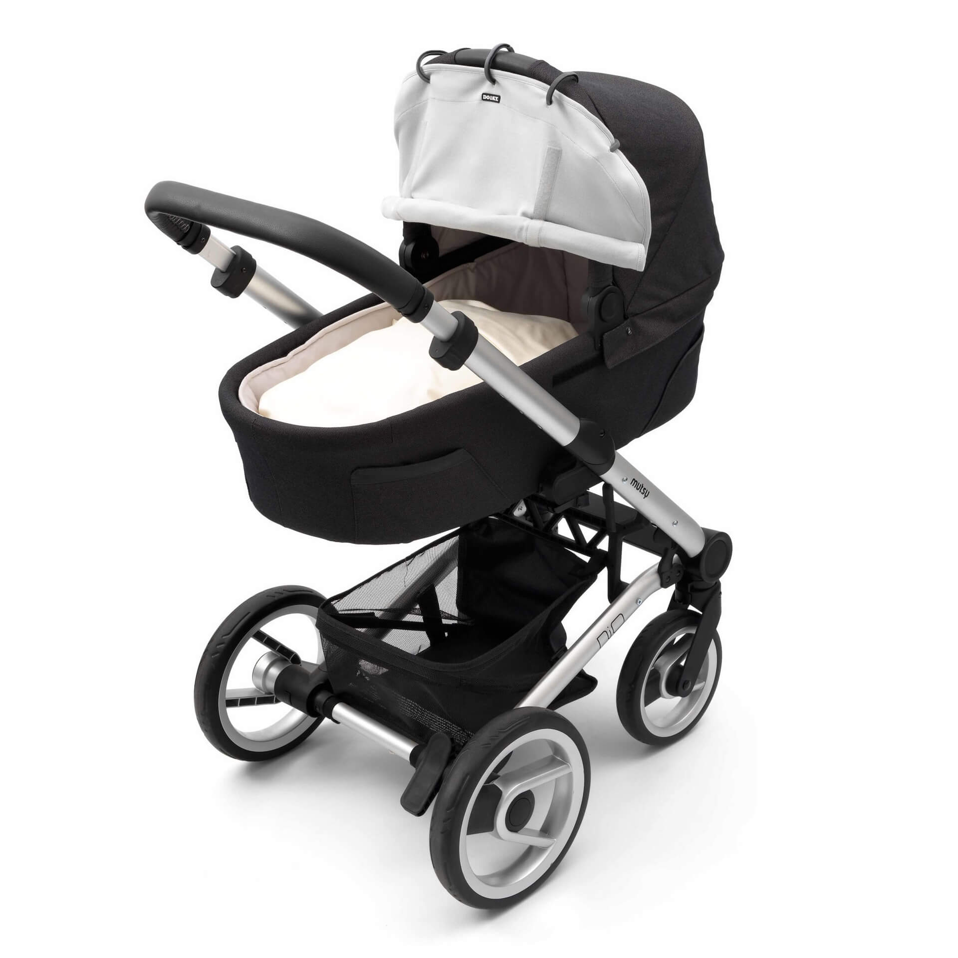 The Dooky Sun Shade helps shield your baby from sun, wind, noise and light rain when you're on the go. It attaches in seconds to your pushchair, stroller, buggy or Group 0+ car seat using five simple rings, with ties at the bottom to stop it flapping about on breezy days.