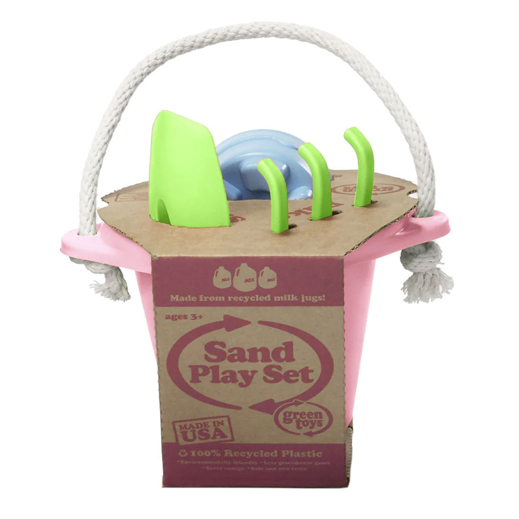 The Green Toys Sand Play Set gives little hands the tools to explore, dig and build outside. The bucket, spade, rake, and sandcastle mould are lightweight and perfectly sized for toddlers to grip and use with ease.