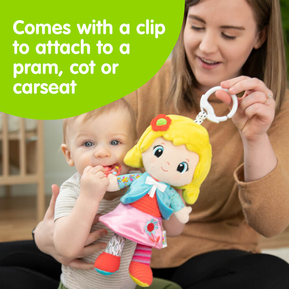 Clip her to the pram, cot or car seat and she’s ready for the ride. Machine washable for easy care, Lamaze's My Friend Olivia makes a thoughtful gift for newborns and toddlers alike.