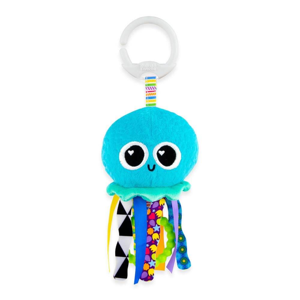 Lamaze’s Mini Sprinkles the Jellyfish brings a splash of fun to early play. With a soft, velvety body and bright ribbon tentacles, this small sensory toy encourages babies to explore through touch, sight and sound, discovering something new with every reach. Each ribbon has a different texture to enjoy, creating soft crinkles and gentle movement that reward every small touch.