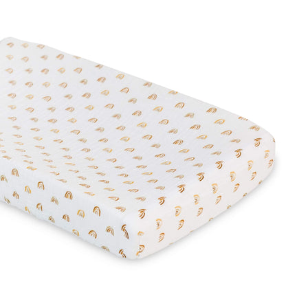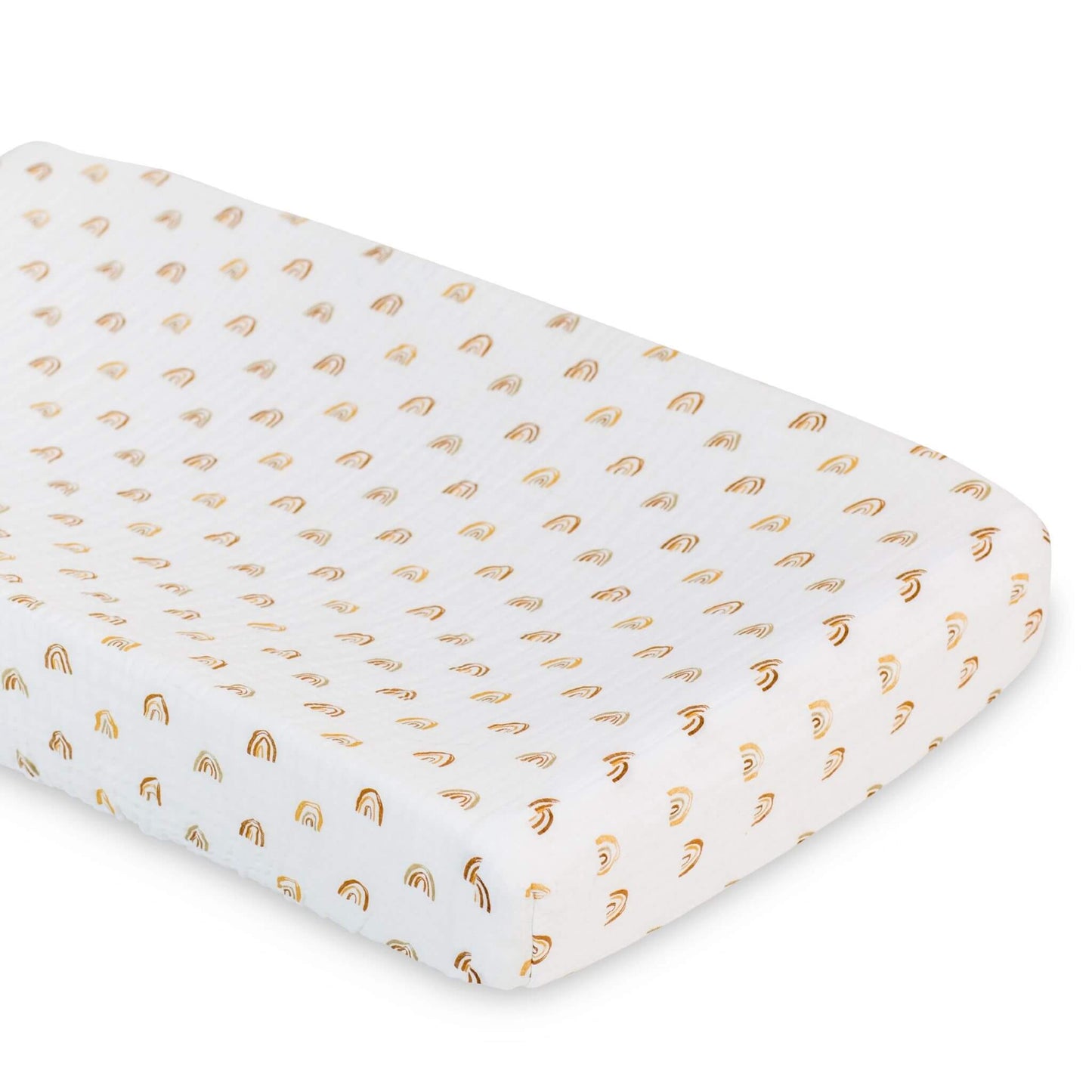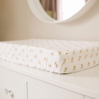 Wrap your baby in softness during nappy changes with the Lulujo Changing Pad Cover. Made from airy, 100% cotton muslin, it feels whisper-soft against delicate skin while allowing air to flow freely for comfort. The elegant print blends seamlessly with your nursery, bringing a touch of understated charm to your changing space.