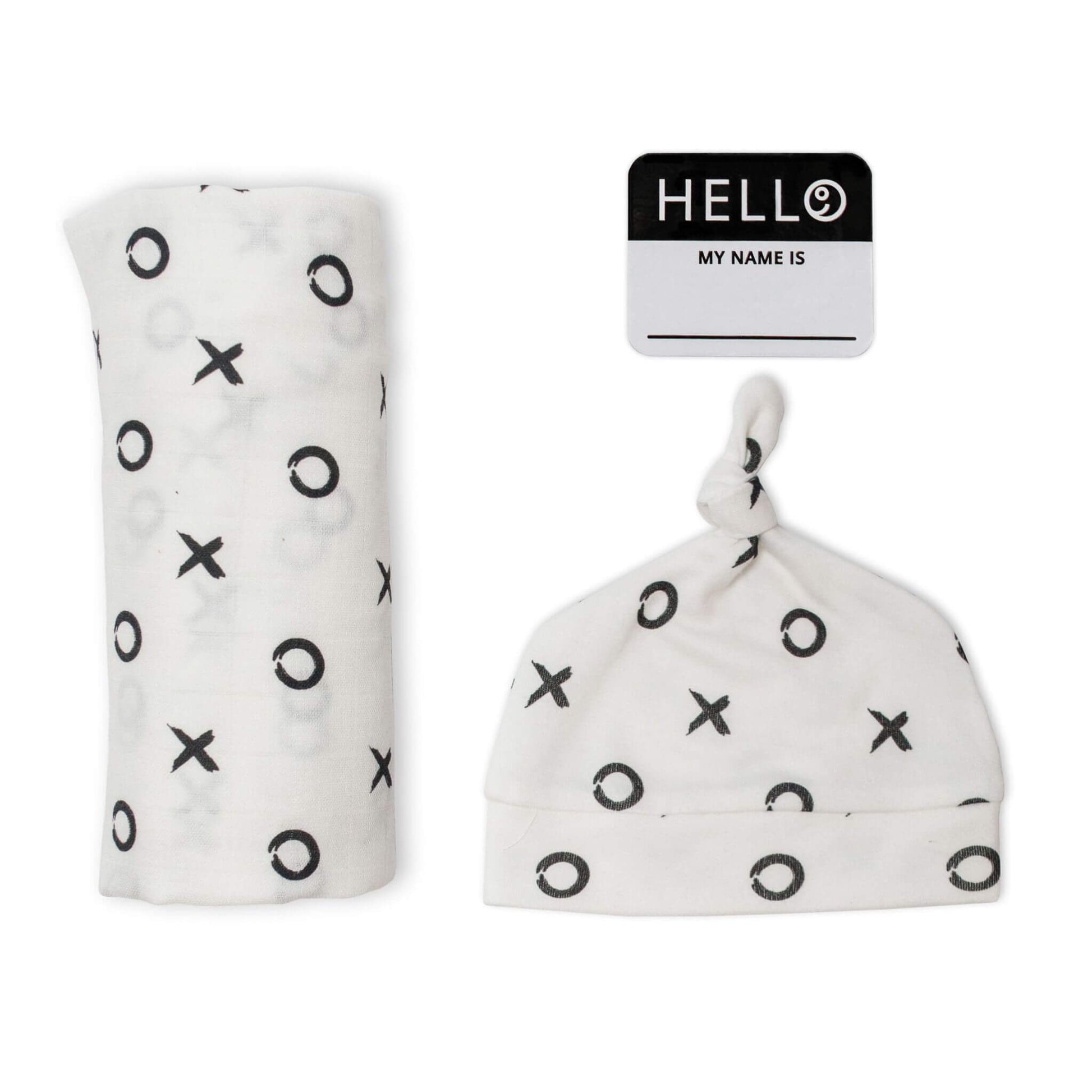 Lulujo Hello World Hat & Swaddle Set (Hugs & Kisses)