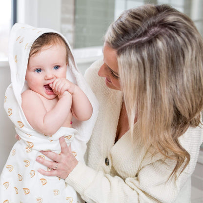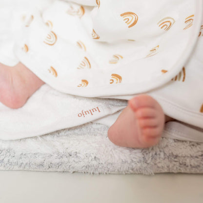 Wrap your little one in cosy comfort with the Lulujo Hooded Towel – a must-have for bath time and beyond. Thoughtfully designed with a snug hood, hang hook, and signature prints, it combines practicality with charm. The dual-layer design pairs soft terry cloth for absorbency with breathable muslin for a gentle touch on delicate skin.