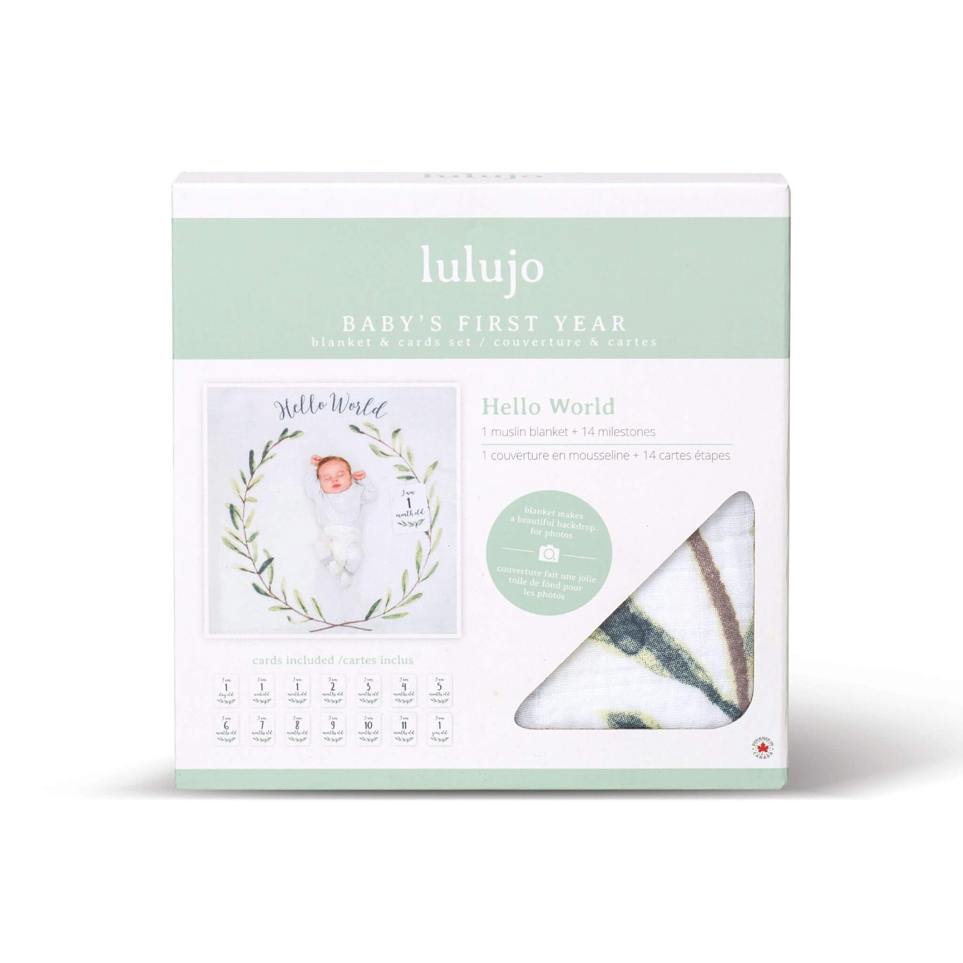 Lulujo Milestone Blanket & Cards Set (Hello World)