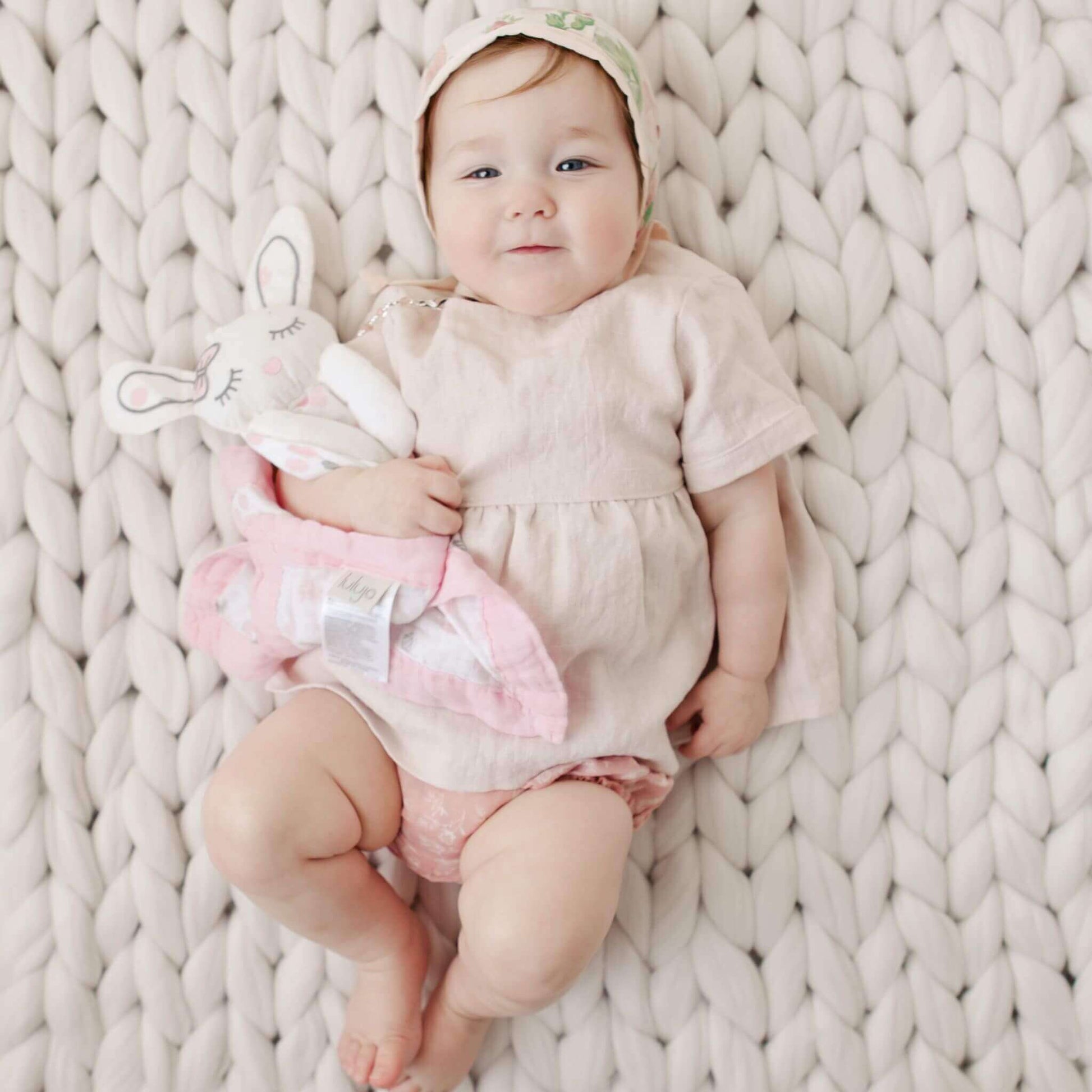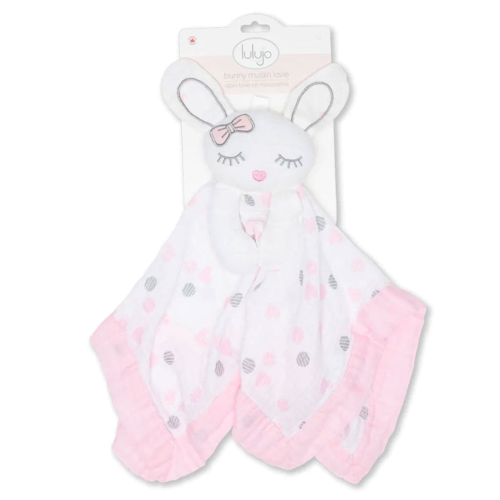 The Lulujo Lovey, is the perfect combination of security blanket and cuddly toy that little ones simply can't resist. Crafted from Lulujo's famously soft muslin, it's gentle against delicate skin while providing that special comfort babies naturally seek when feeling tired or overwhelmed.
