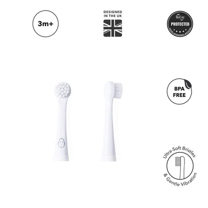 These replacement heads are made for the Matchstick Monkey Baby Electric Sonic Toothbrush and give little ones a gentle start to brushing. The ultra-soft bristles feel comfortable against newly cut teeth and early gums, helping babies get used to the sensation without irritation or fuss.