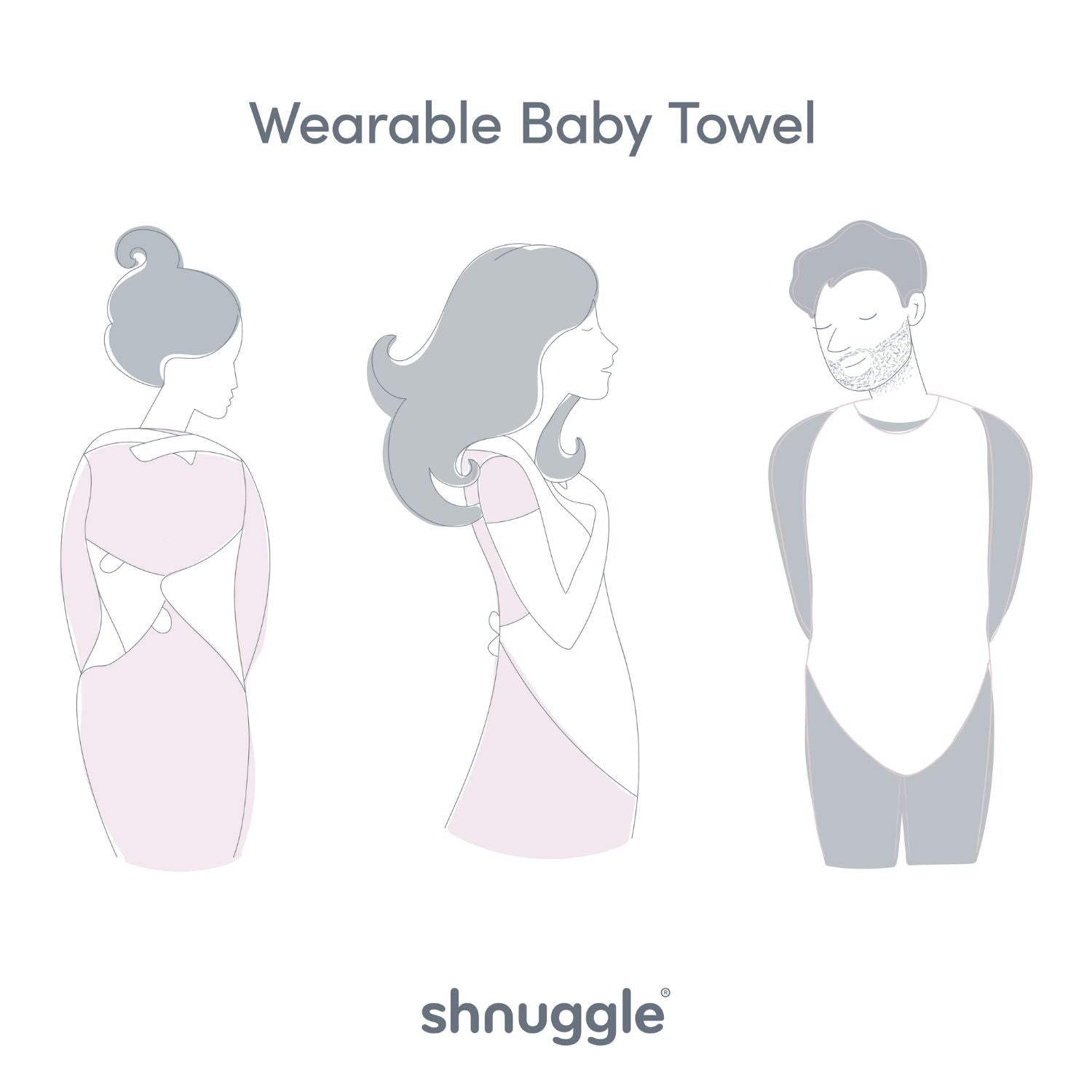 The Shnuggle Wearable Baby Towel makes bath time easier and cosier for both you and your little one. Designed to be worn, it keeps you dry and your hands free, so you can lift baby from the bath and wrap them up without any fuss.