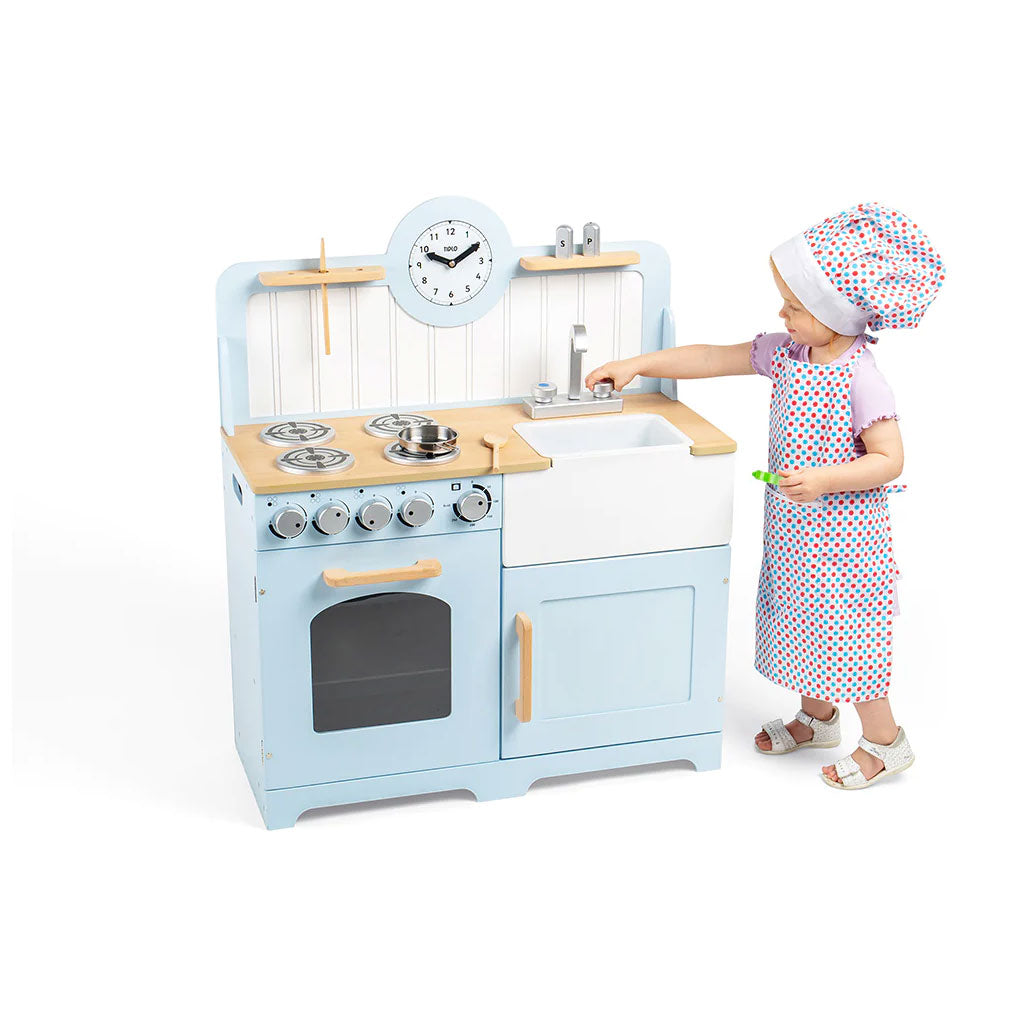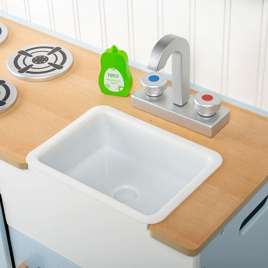 Inspire little chefs to get cooking with the beautifully made Tidlo Country Play Kitchen. With its classic wooden design and charming painted finish, it’s packed with all the ingredients for imaginative play—featuring an oven and hob with clicking dials, a Belfast-style sink with bowl, and a handy storage cupboard for tidying up afterwards.