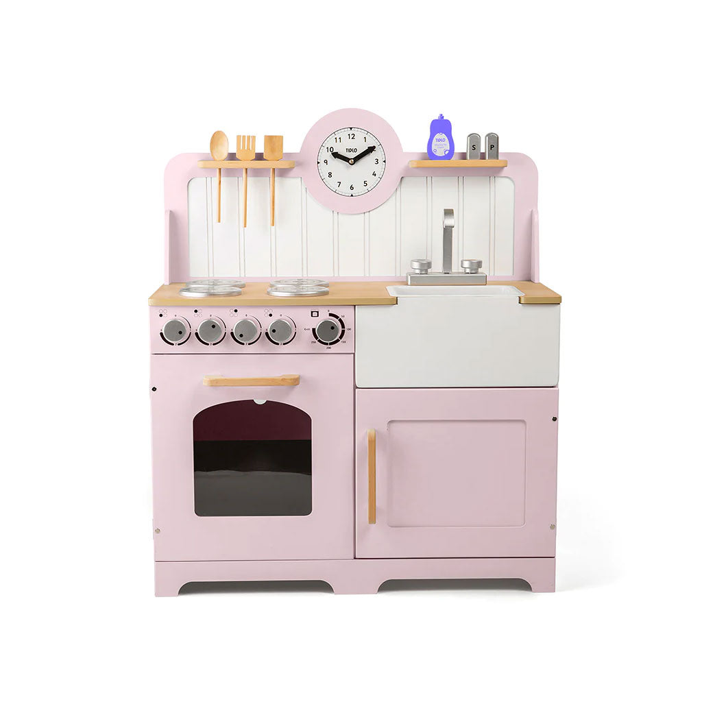Inspire little chefs to get cooking with the beautifully made Tidlo Country Play Kitchen. With its classic wooden design and charming painted finish, it’s packed with all the ingredients for imaginative play—featuring an oven and hob with clicking dials, a Belfast-style sink with bowl, and a handy storage cupboard for tidying up afterwards.