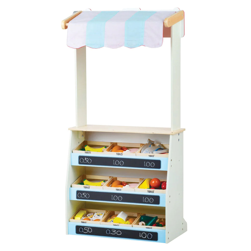 It’s designed to fit Tidlo wooden food crates (sold separately), and comes with a removable chalkboard panel for prices, signs or silly shop names. Switching between setups is easy—even for little ones—making this a brilliant pick for encouraging storytelling, role play and independent playtime that keeps evolving.