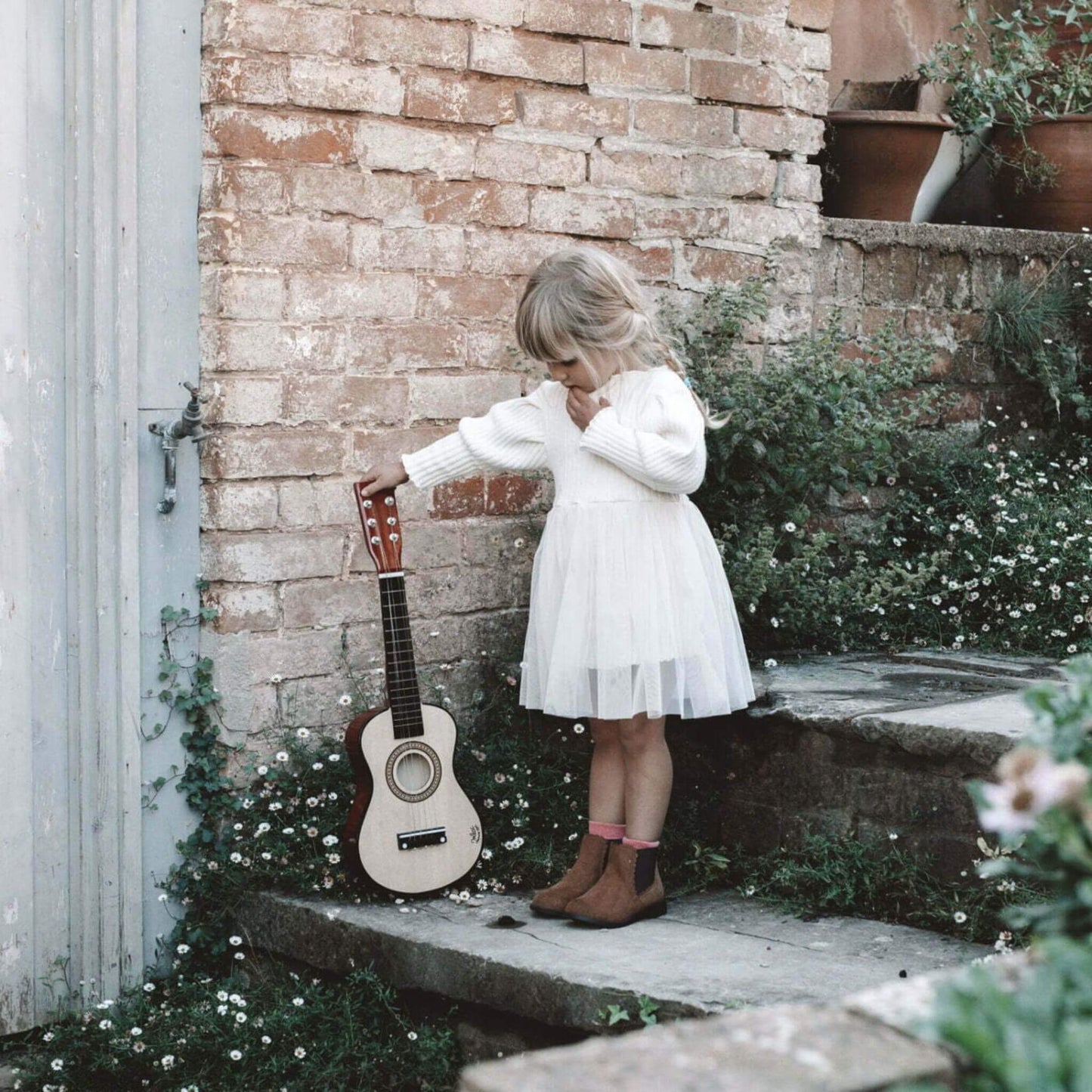 Made from high-quality natural wood, this guitar introduces children to the basics of music. It encourages hand-eye coordination, fine motor skills, and auditory development. Plus, it’s a great way for kids to engage in pretend play, imitating their favourite musicians and feeling like true rock stars.