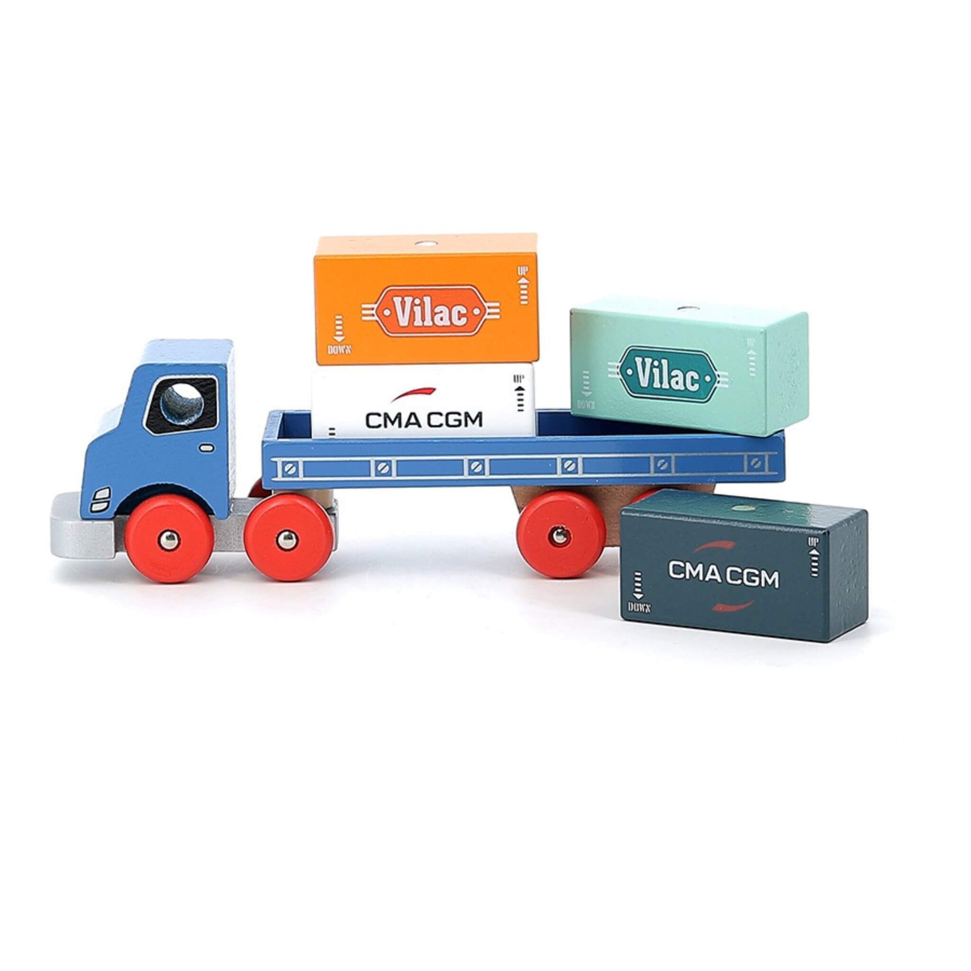 The Vilac Vilacity Container Truck brings big adventures to little hands! This wooden 8-wheeler features four magnetic container blocks that cleverly stack and connect, perfect for young transport enthusiasts. Kids...